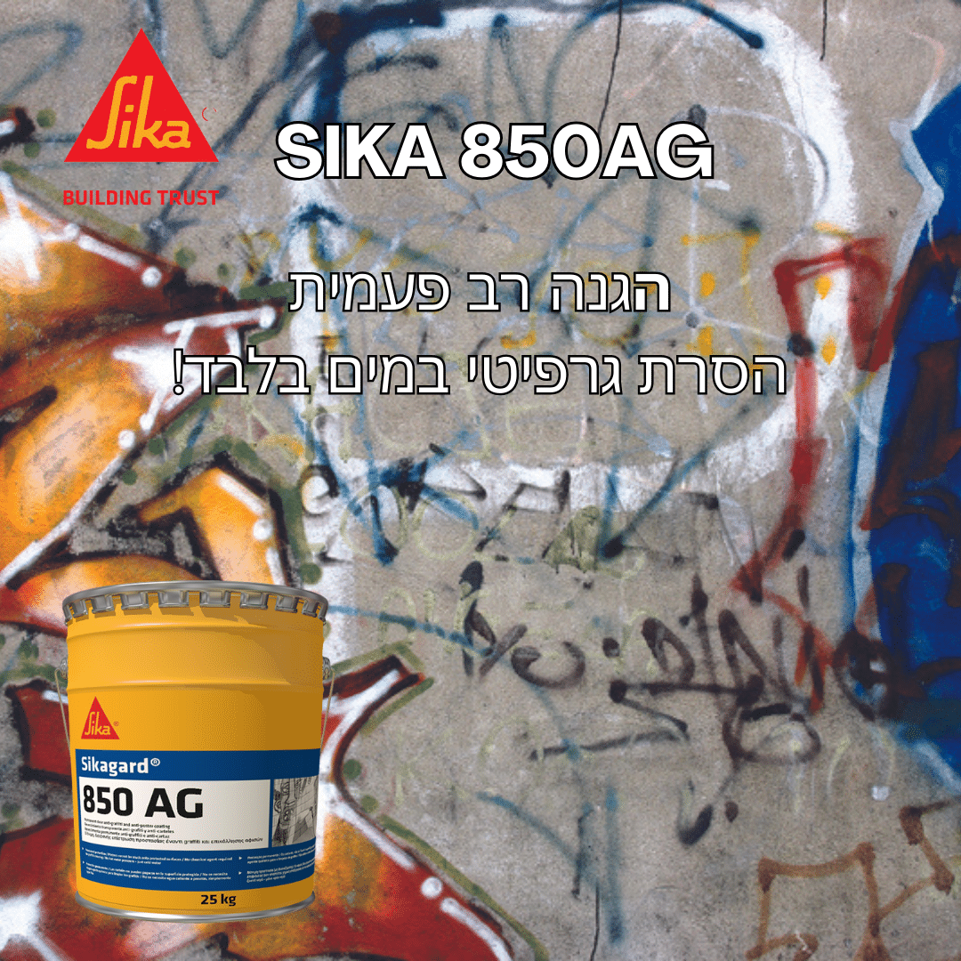 סיקה 850 AG אנטי גרפיטי – סילר להגנה מפני נזקים סביבתיים ונזקי וונדליזם (גרפיטי ומדבקות) סילר זה ניתן ליישום על מגוון רחב של תשתיות, על קירות בלבד להגנה רחבה מפני צבעים, צבעי ספריי,טושים, מדבקות ועוד.